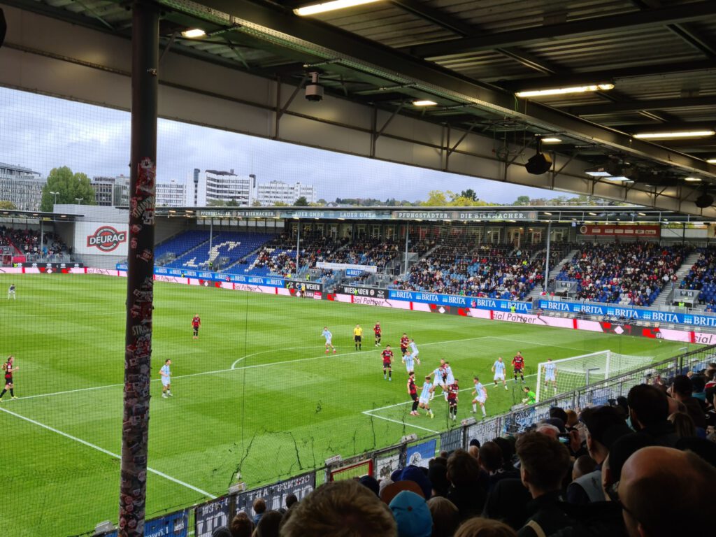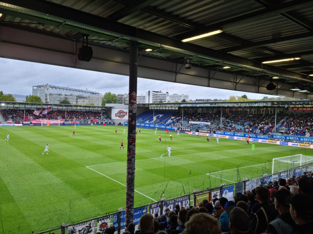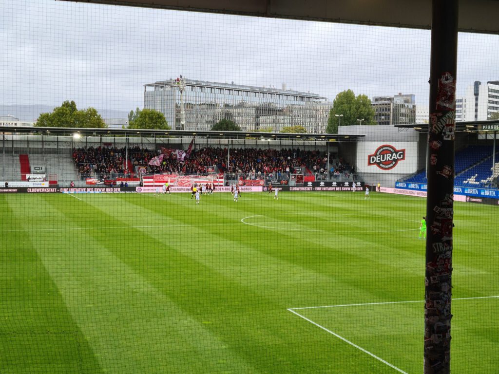Wenig Schönes gab es in Wiesbaden zu sehen am langen Fußballwochenende. Immerhin konnte ich ein paar zusätzliche Spiele unterbringen, so gibt es etwas Ablenkung vom erneut sehr tristen Auftreten der Löwen. Auch heute wieder ein Spiel ohne Selbstvertrauen und Mut. Erkennbar war allerdings der Wille, diesmal nicht gleich wieder zu Beginn in Rückstand zu geraten. Zumindest dies konnte verhindert werden, nach vorne ging aber wie schon erwähnt eher nix, zweite Bälle landeten immer gleich bei den Gastgebern. Mehr fällt mir tatsächlich nicht ein. Bemerkenswert sonst war, dass auch hier ein paar Hauptstadtlöwen dabei waren, und dass es in der sich Arena nennenden Wellblechhütte auch Ebbelwoi gab. Unser nächster Trainer sollte schnell die Ärmel aufkrempeln, am heutigen Engagement des Interimstrainers hat es nicht gemangelt.