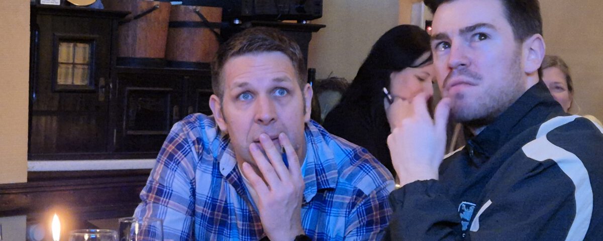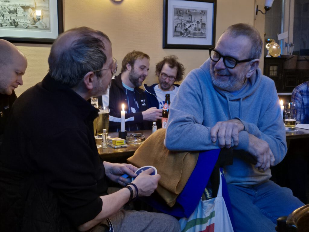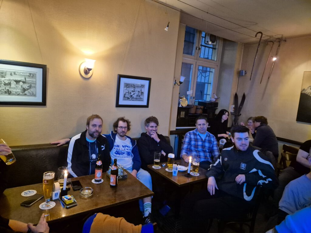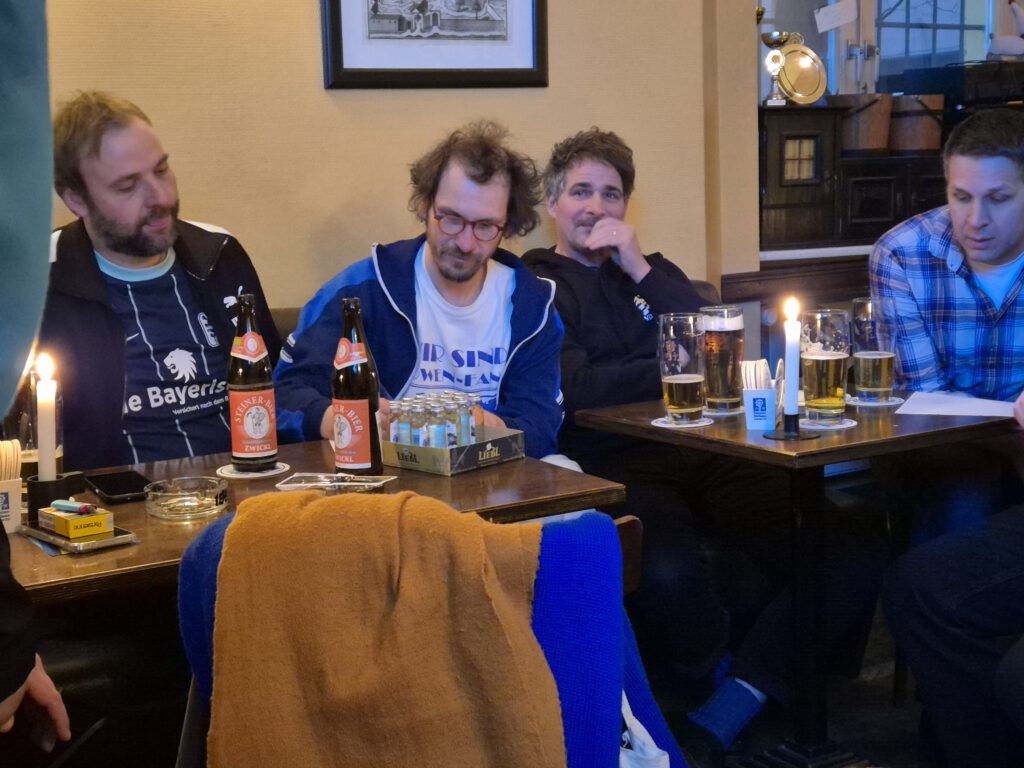 So musste ich nach einer kurzen, aber herzlichen Begrüßung direkt mit Christian zusammen unser Quiz abhalten. Nein, Moment. Ohne Bier wollte ich natürlich nicht anfangen. Aber dann ging es direkt ans Eingemachte. Christian, (der leider verhinderte) Stoffel und ich hatten uns richtig gemeine Fragen ausgedacht. Was bin ich froh, dass ich als Organisator nicht teilnehmen konnte. Ich wäre mit Pauken und Trompeten untergegangen.