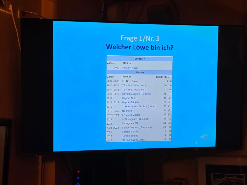 Es mussten diverse Spieler, Stadien und Zahlen geraten werden. Aber auch Fieslichkeiten rund um den TSV. Wer hätte beispielsweise gedacht, dass wir mal eine Verbindung zum Verein für die Verbesserung der Damenoberbekleidung hatten? Oder welcher Fremdverein die Sechzger in seiner Hymne besingt? Tja, das wird hier natürlich nicht verraten!