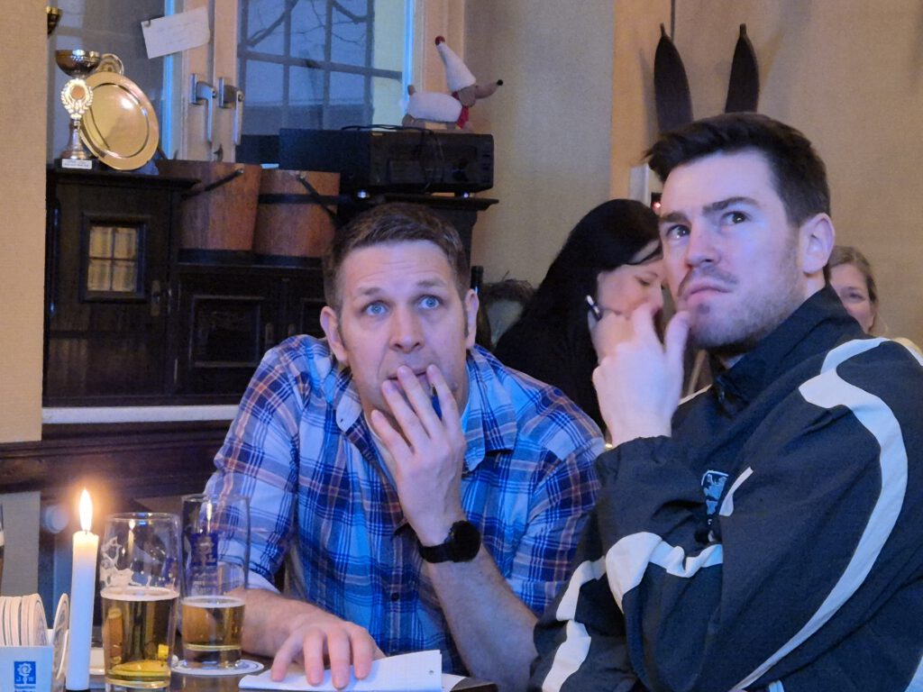 So musste ich nach einer kurzen, aber herzlichen Begrüßung direkt mit Christian zusammen unser Quiz abhalten. Nein, Moment. Ohne Bier wollte ich natürlich nicht anfangen. Aber dann ging es direkt ans Eingemachte. Christian, (der leider verhinderte) Stoffel und ich hatten uns richtig gemeine Fragen ausgedacht. Was bin ich froh, dass ich als Organisator nicht teilnehmen konnte. Ich wäre mit Pauken und Trompeten untergegangen.